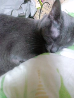 起きてる時は、障子は破くし、じゃれると勢い余って爪出して齧るのに、寝顔は天使(笑